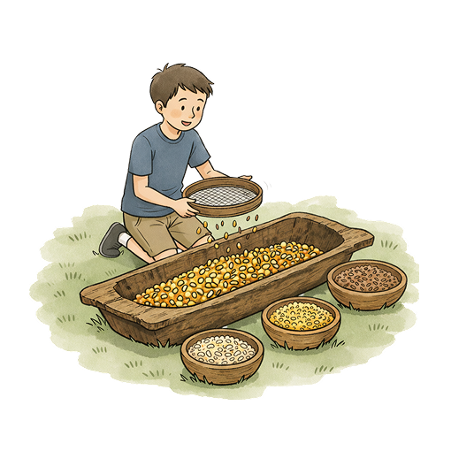 A terményválogató egy olyan tematikus foglalkoztató, amelyben a gyermekek játék közben ismerkednek meg a régi korok mindennapi munkafolyamataival.