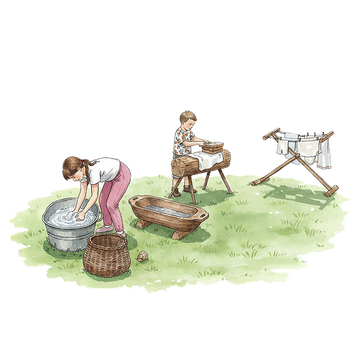 A falusi mosoda egy élményalapú tematikus játék, amelyben a gyermekek játékos formában próbálhatják ki a régi idők mosási lépéseit.